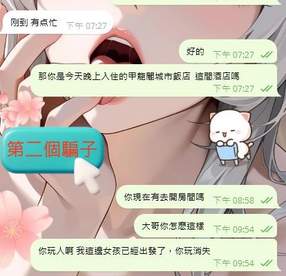 次に、第二のお客様ですが、最初は全く返信がなかったのに、キャンセルしたいと言われました。しかし、彼がそのメッセージを見た後、少し忙しくてホテルに到着したと言ってきたので、そのまま女の子をホテルに向かわせました。しかし、女の子がホテルに到着すると、彼は私をブロックしました。このような行動には本当に理解ができません。なぜ私や女の子にこのようなことができるのでしょうか?